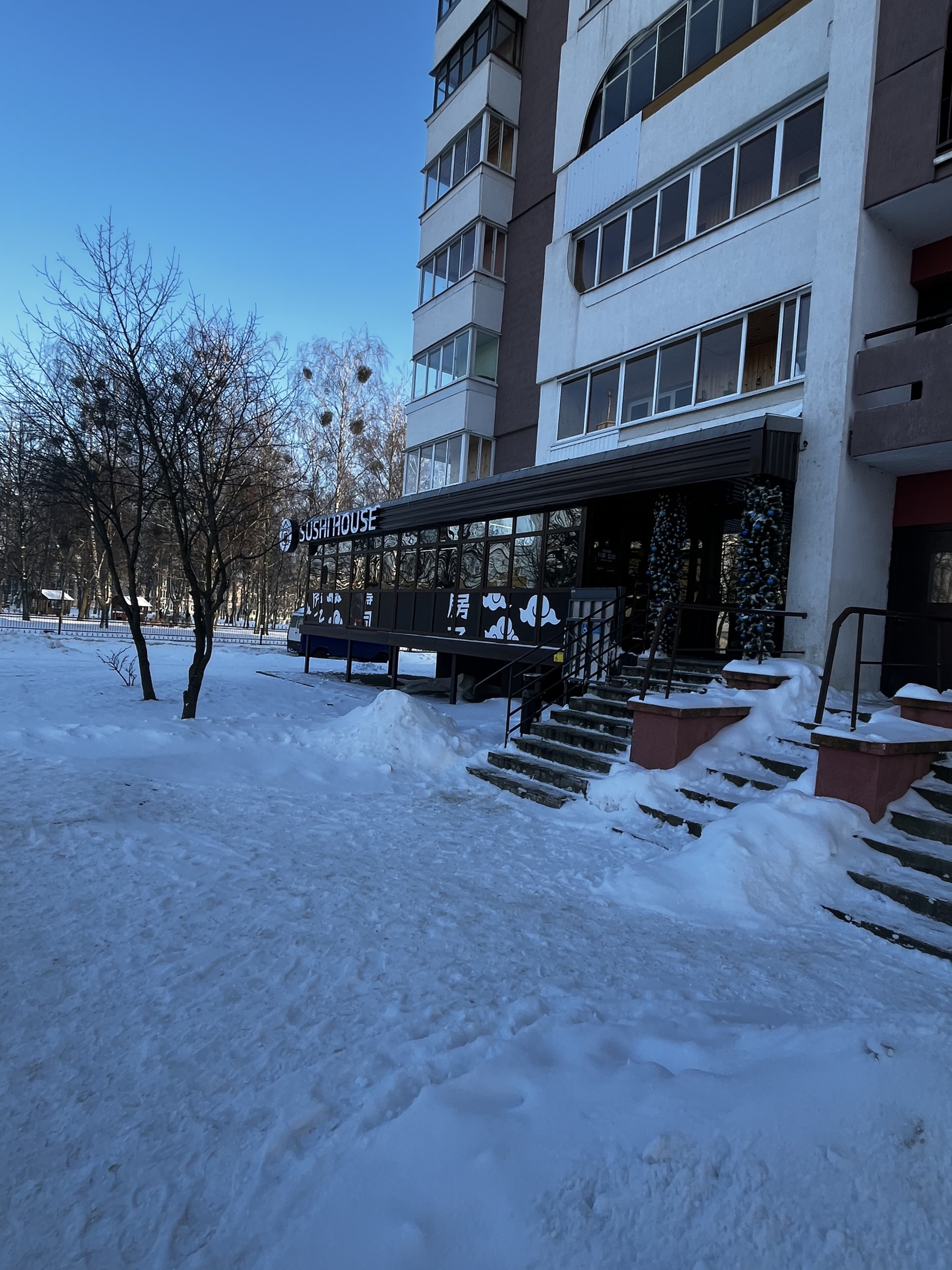 Пятнадцати этажный дом расположен в самом центре города. На первом этаже находится кофейня, цветочный магазин, магазин алкогольных напитков, суши-бар с посадочными местами. Рядом с домом: центральная площадь, административное здание ОАО "Беларуськалий", универмаг, горисполком, кинотеатр "Зорка Венера", кафе "Алеся". В пешей доступности парк "Четырех стихий" и Солигорское водохранилище с зоной отдыха.